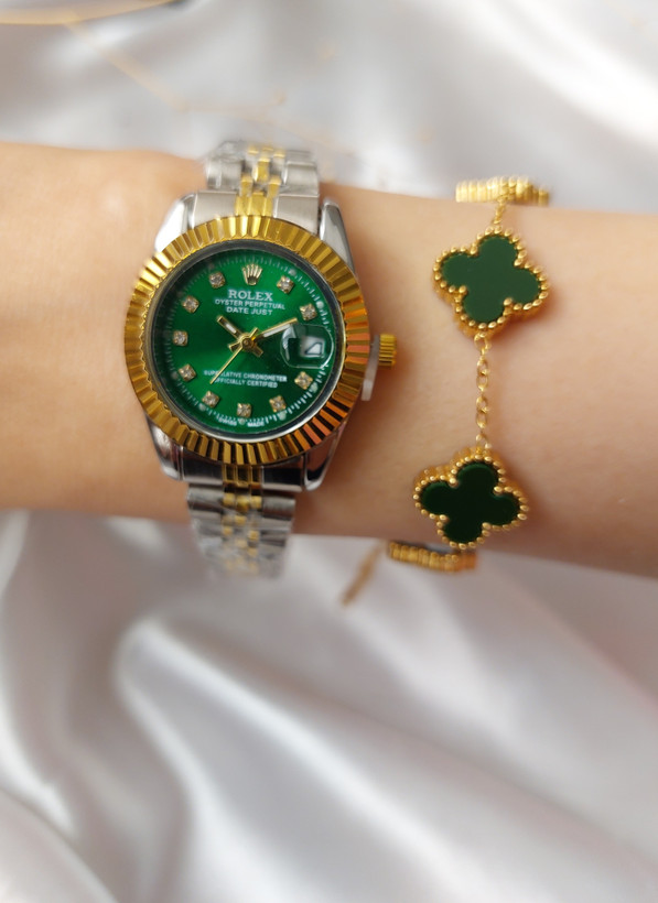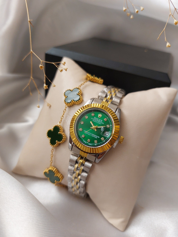 رولکس زنانه سبز بند دو رنگ