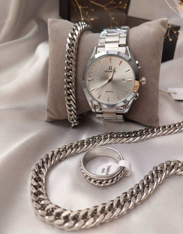 ست گردنبند،دستبند و انگشتر کارتیه کاملا استیل رنگ ثابت میباشد .